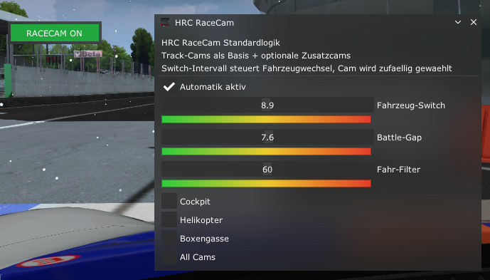 Die HRC_RaceCam sorgt automatisch für spannende Renn-Action wie im echten TV. Die Kamera wechselt dynamisch zwischen verschiedenen Fahrzeugen, erkennt packende Zweikämpfe auf der Strecke und setzt genau die Szenen in den Fokus, die gerade wichtig sind.